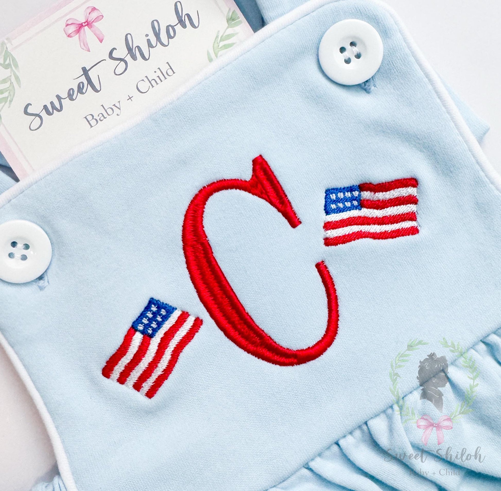 Design includes a mini fill American flag machine embroidery file. Fonts not included.