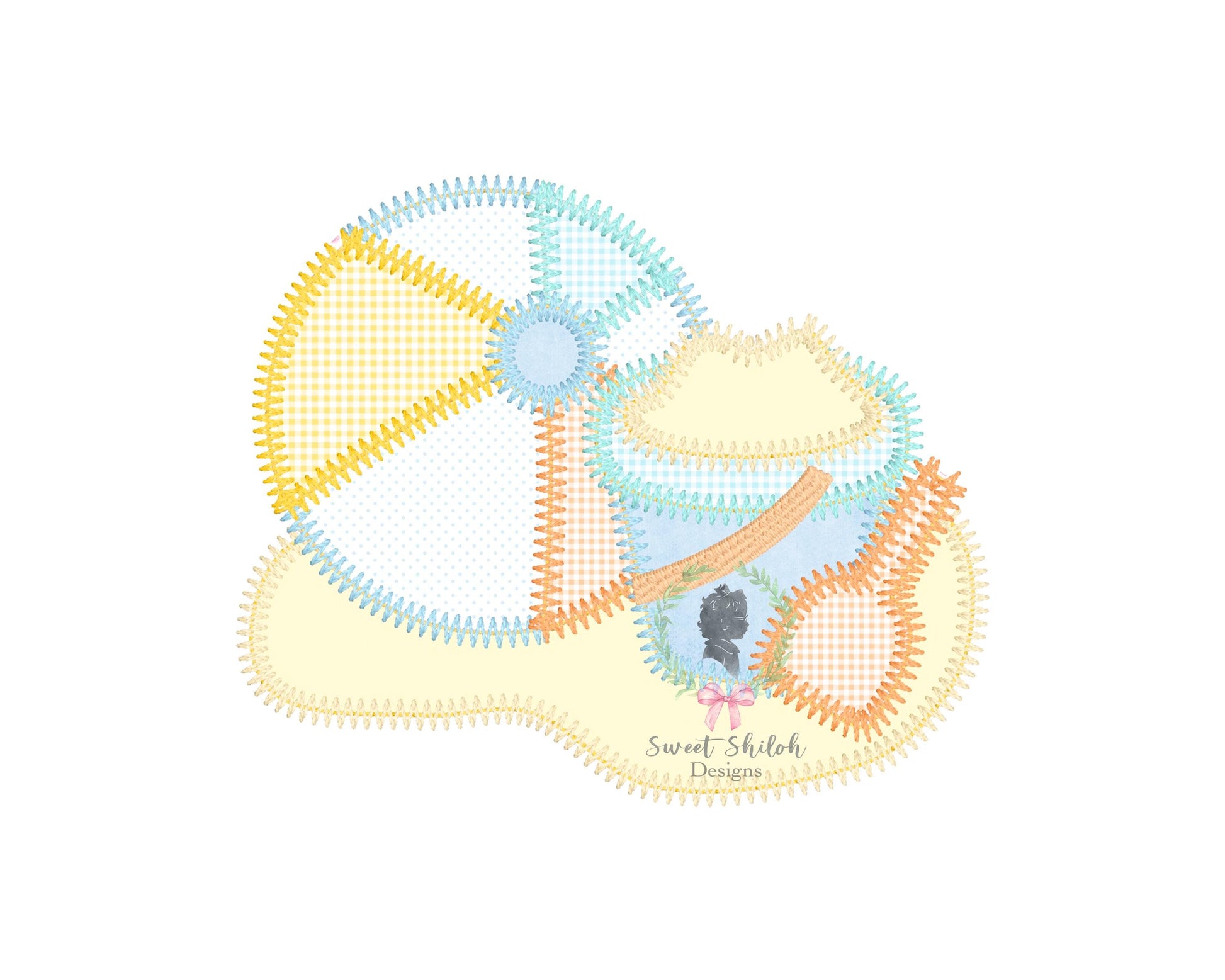 Beach Ball Sand Bucket Zigzag Stitch Applique