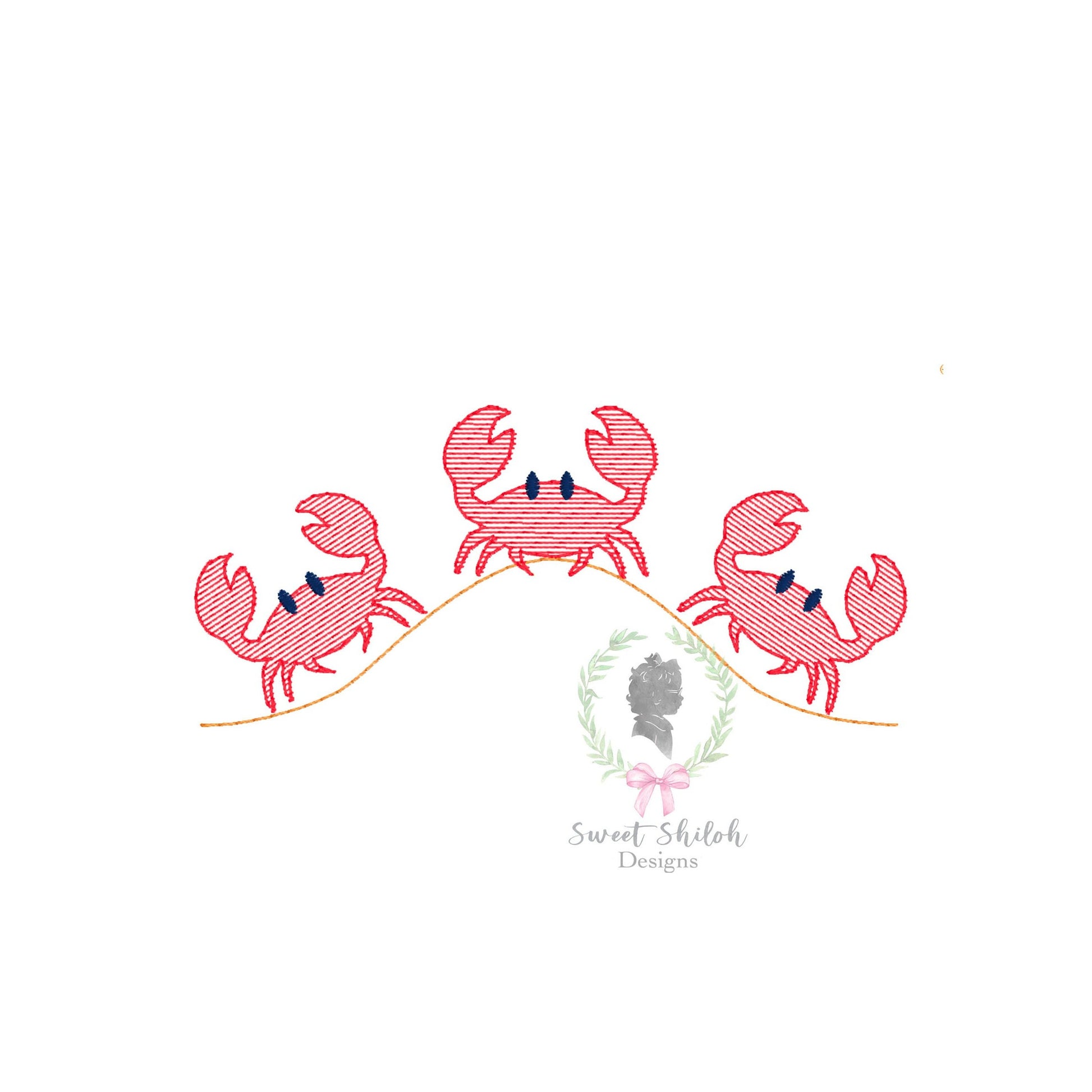 Design includes a sketch crawling crab trio machine embroidery file. Font not included.