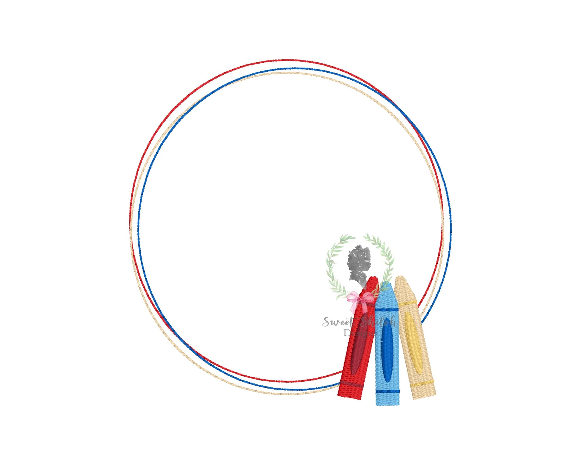 Design includes crayon trio scribble monogram frame machine embroidery file. Fonts not included.