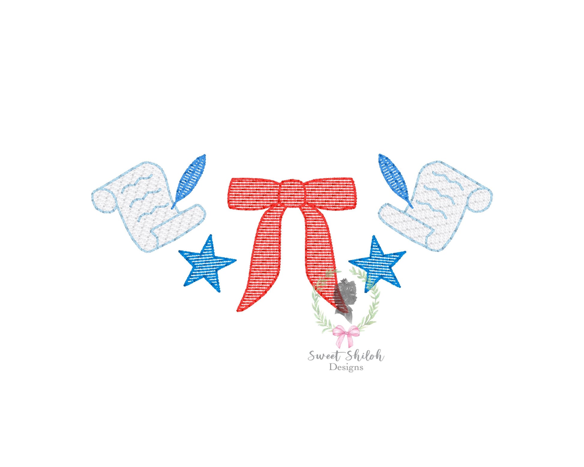 Design includes a sketch Declaration of Independence frame machine embroidery file. Fonts not included.