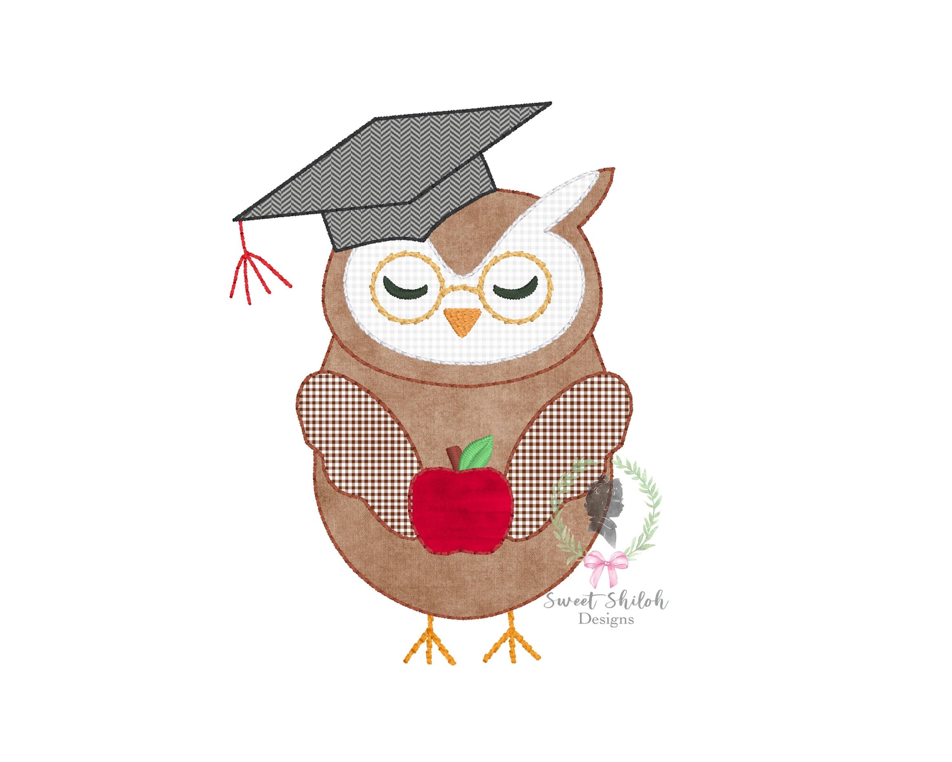 Design includes a bean stitch back to school owl with apple machine embroidery file. Font not included.