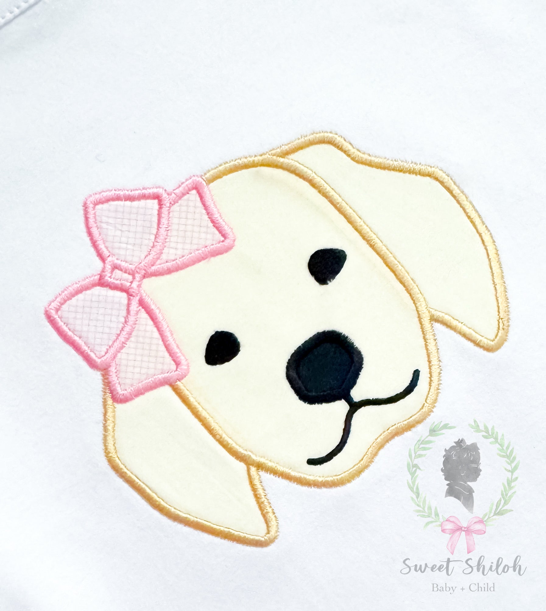Labrador Puppy with Bow Satin Stitch Applique