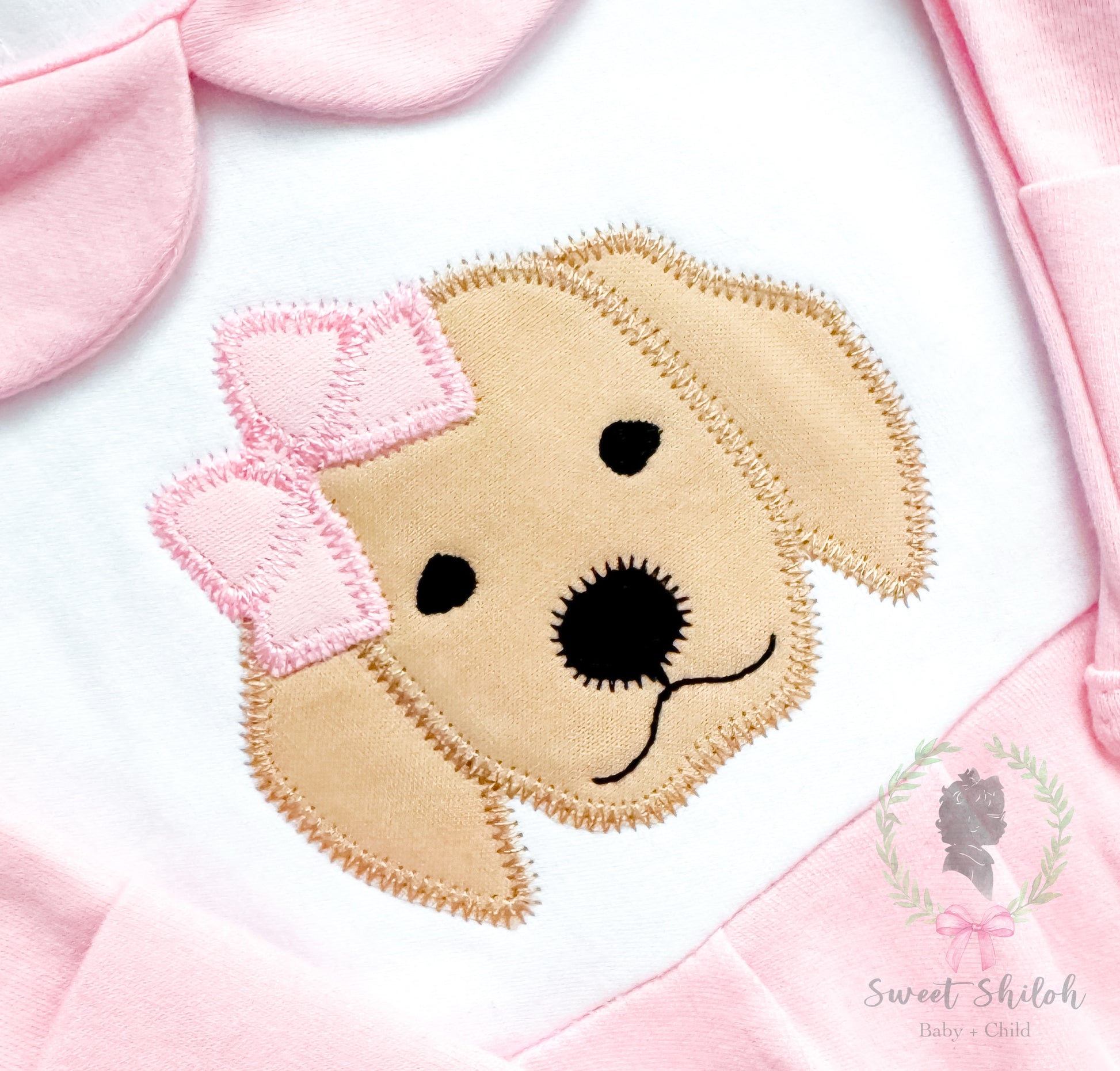 Labrador Puppy with Bow Zigzag Stitch Applique