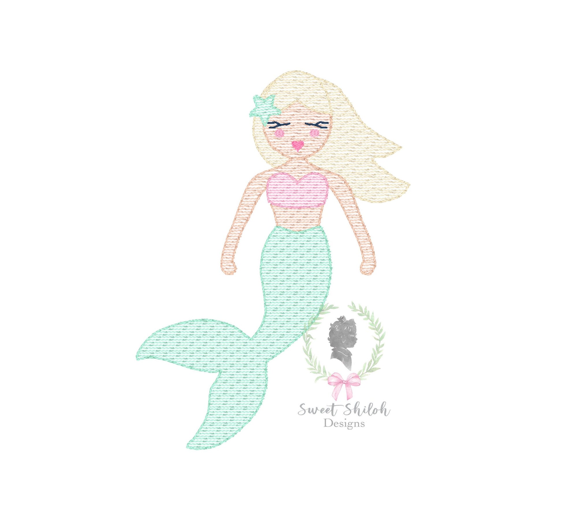 Design includes a sketch stitch fairytale mermaid machine embroidery file. Font not included.
