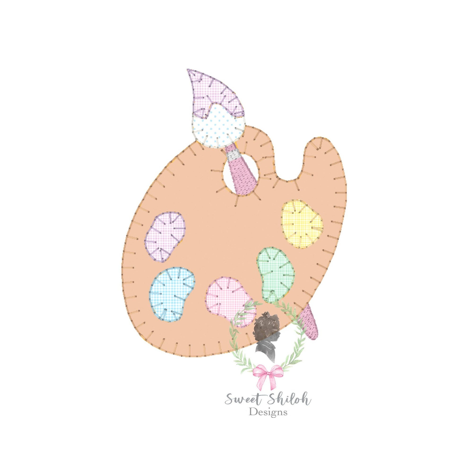 Design includes a blanket stitch paint palette with paintbrush applique machine embroidery file. Fonts not included.