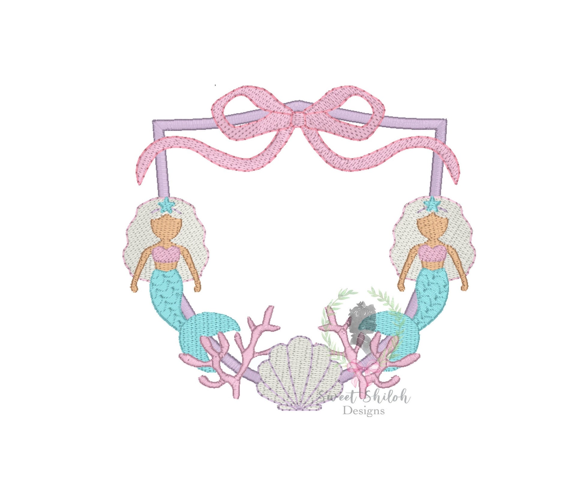 Design includes a princess mermaid monogram frame machine embroidery file. Font not included.