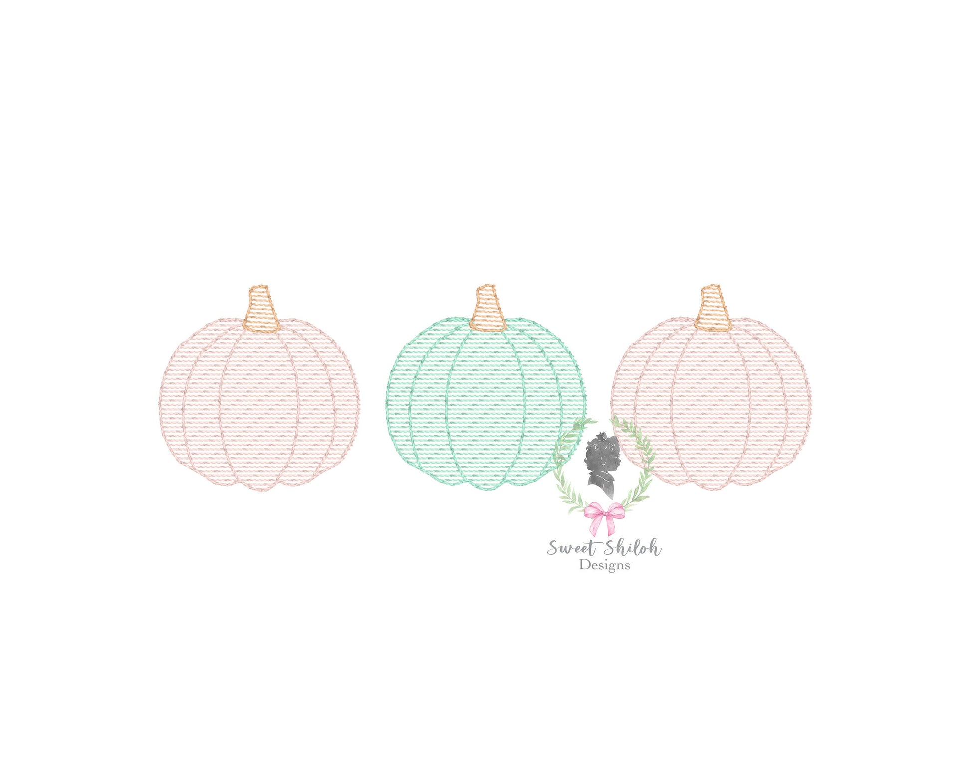 Design includes a sketch stitch pumpkin trio machine embroidery file. Fonts not included.