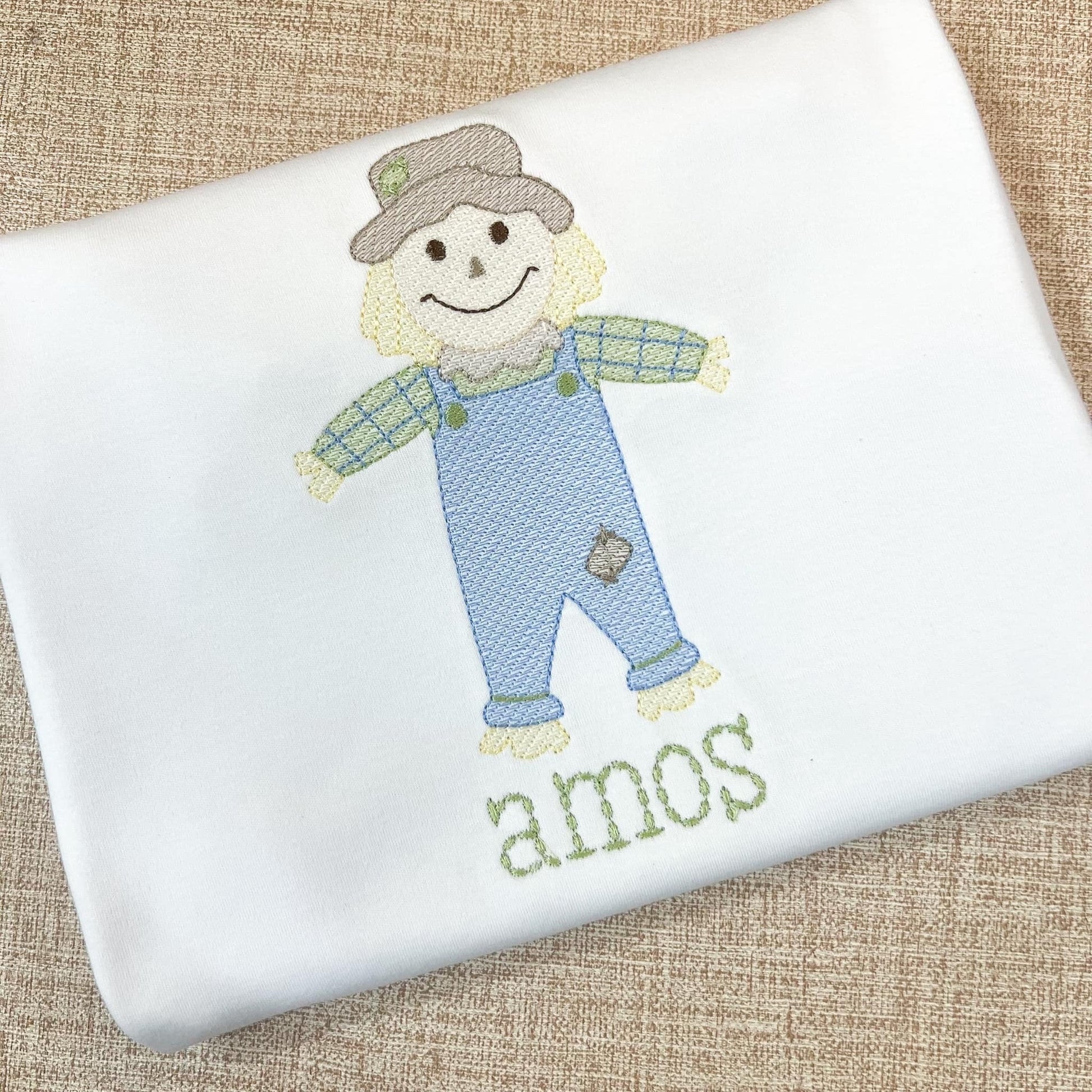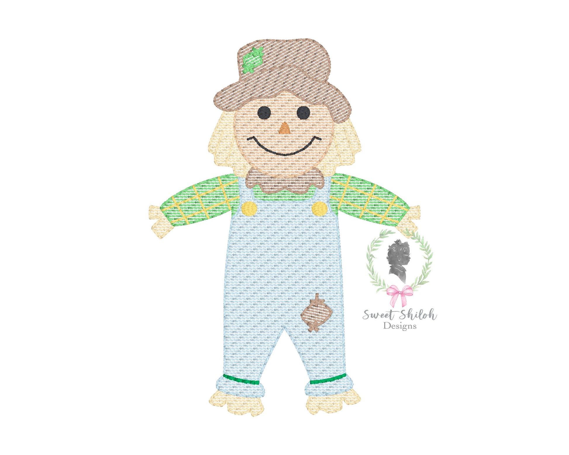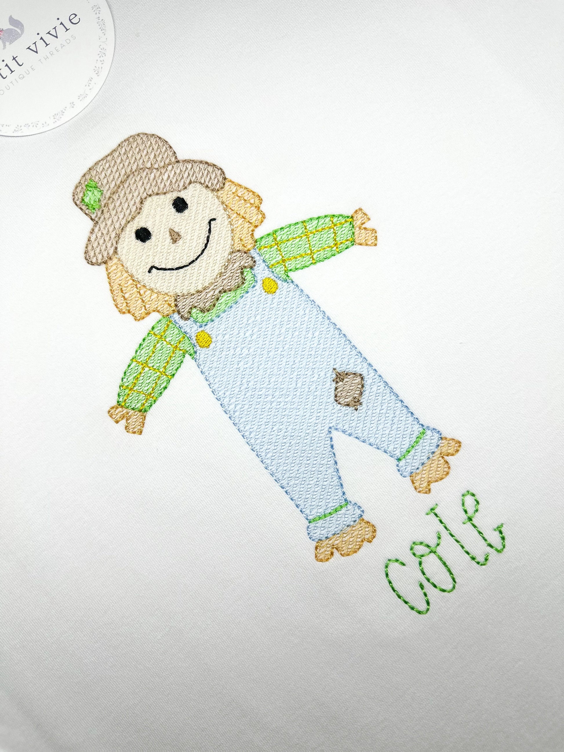 Design includes a sketch scarecrow boy machine embroidery file. Font not included.
