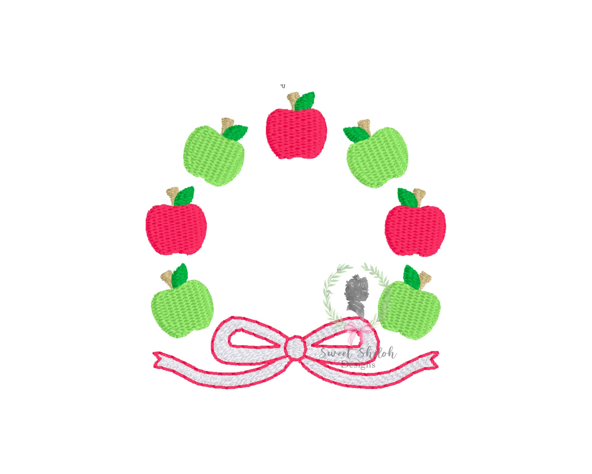 Design includes a back to school bow apple monogram frame machine embroidery file. Fonts not included.