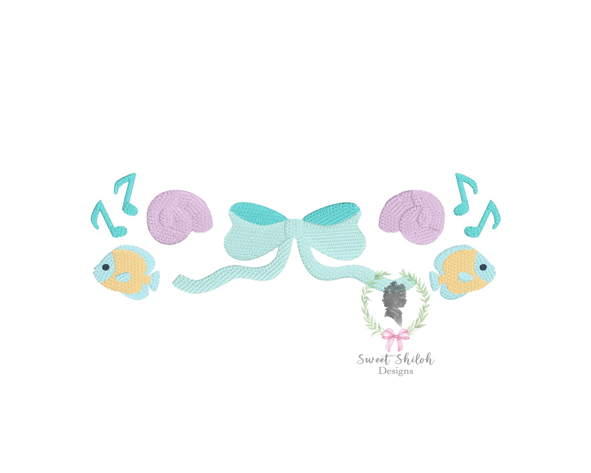 Design includes a sea princess monogram frame machine embroidery file. Font not included.