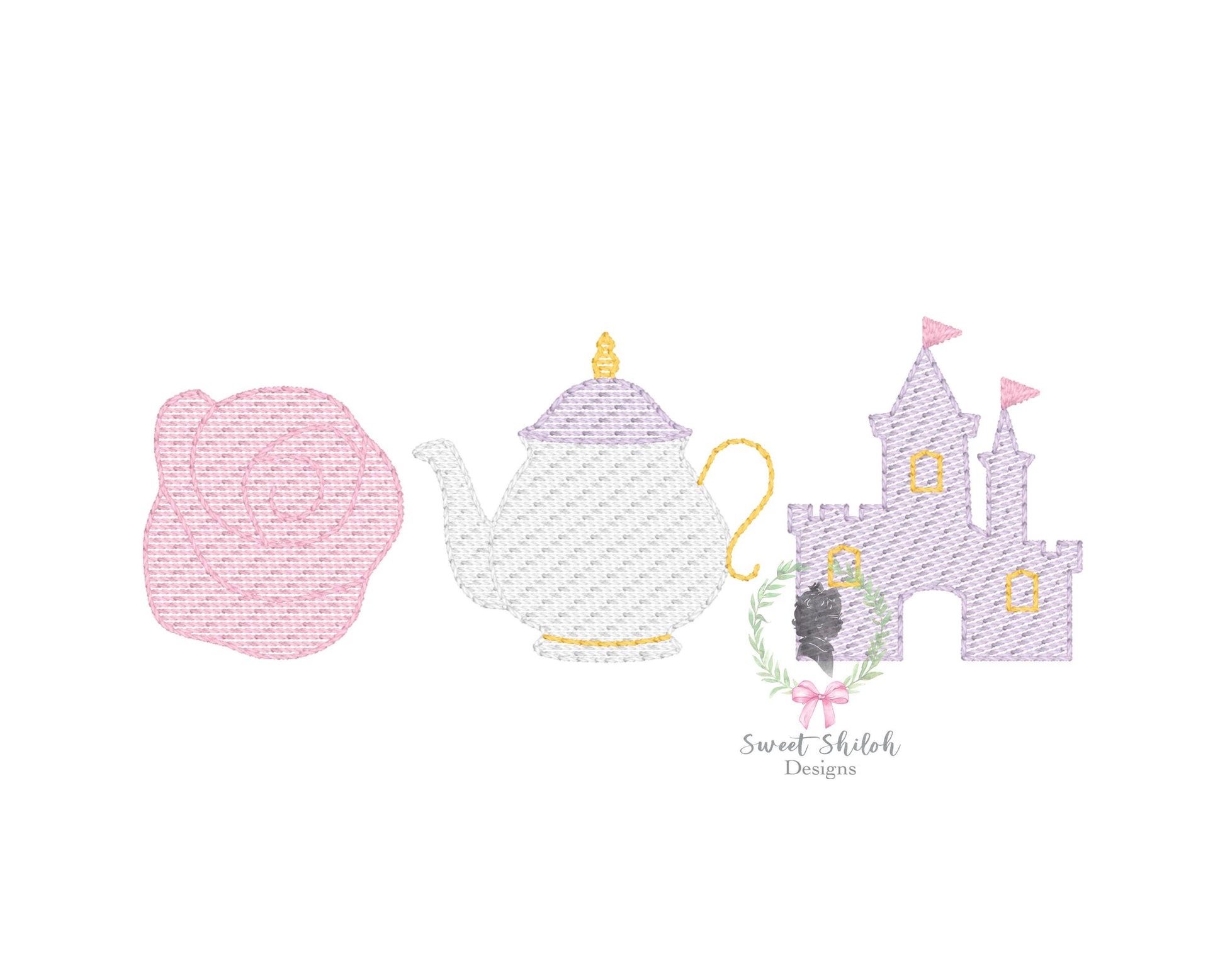 Design includes a sketch storybook princess trio machine embroidery file. Font not included.