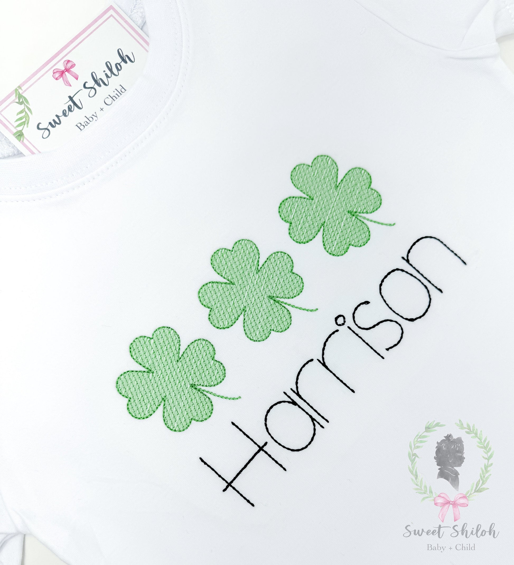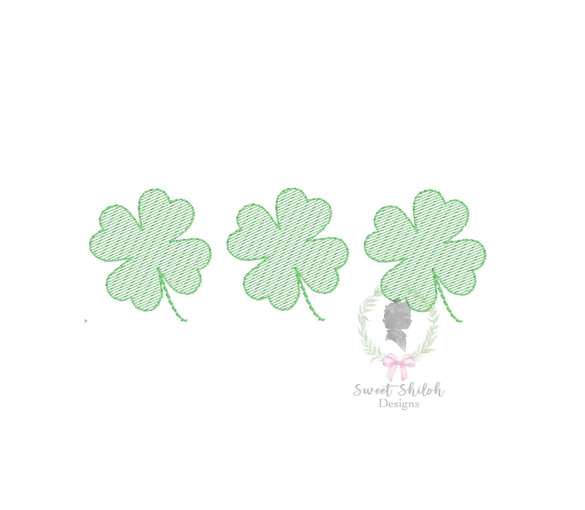 Design includes a sketch St. Patrick's Day 4 leaf clover trio machine embroidery file. Font not included.