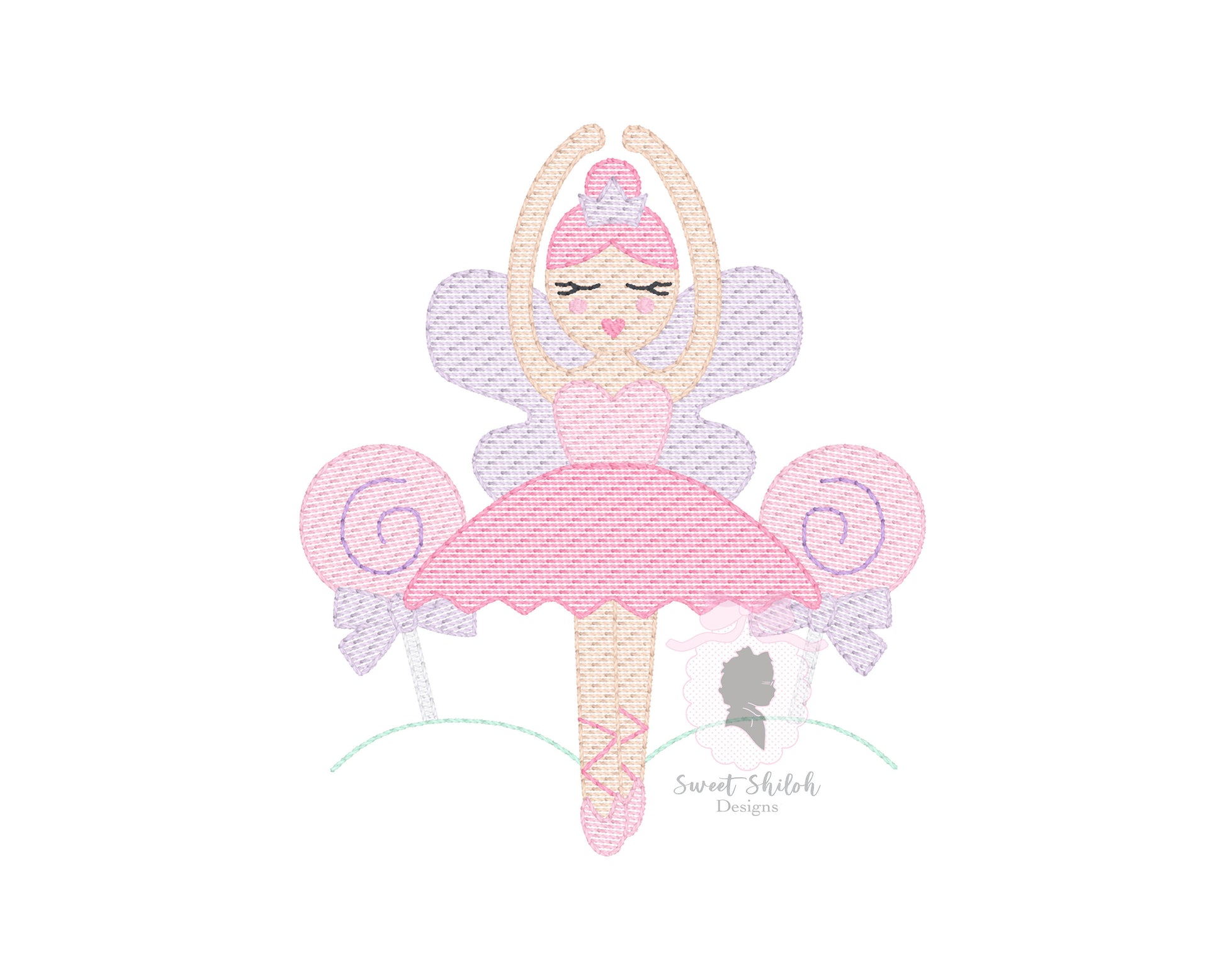 Design includes a sketch sugarplum dancer machine embroidery file. Fonts not included.