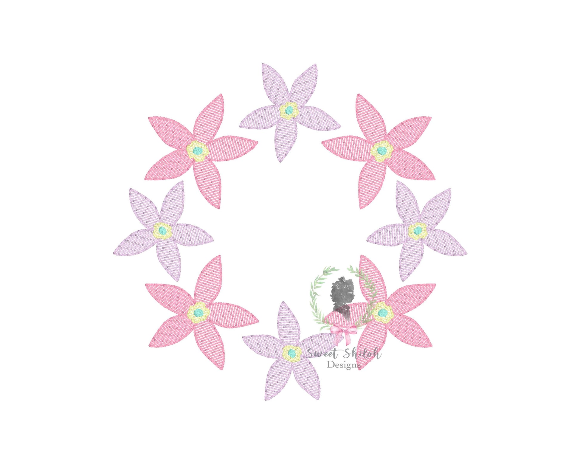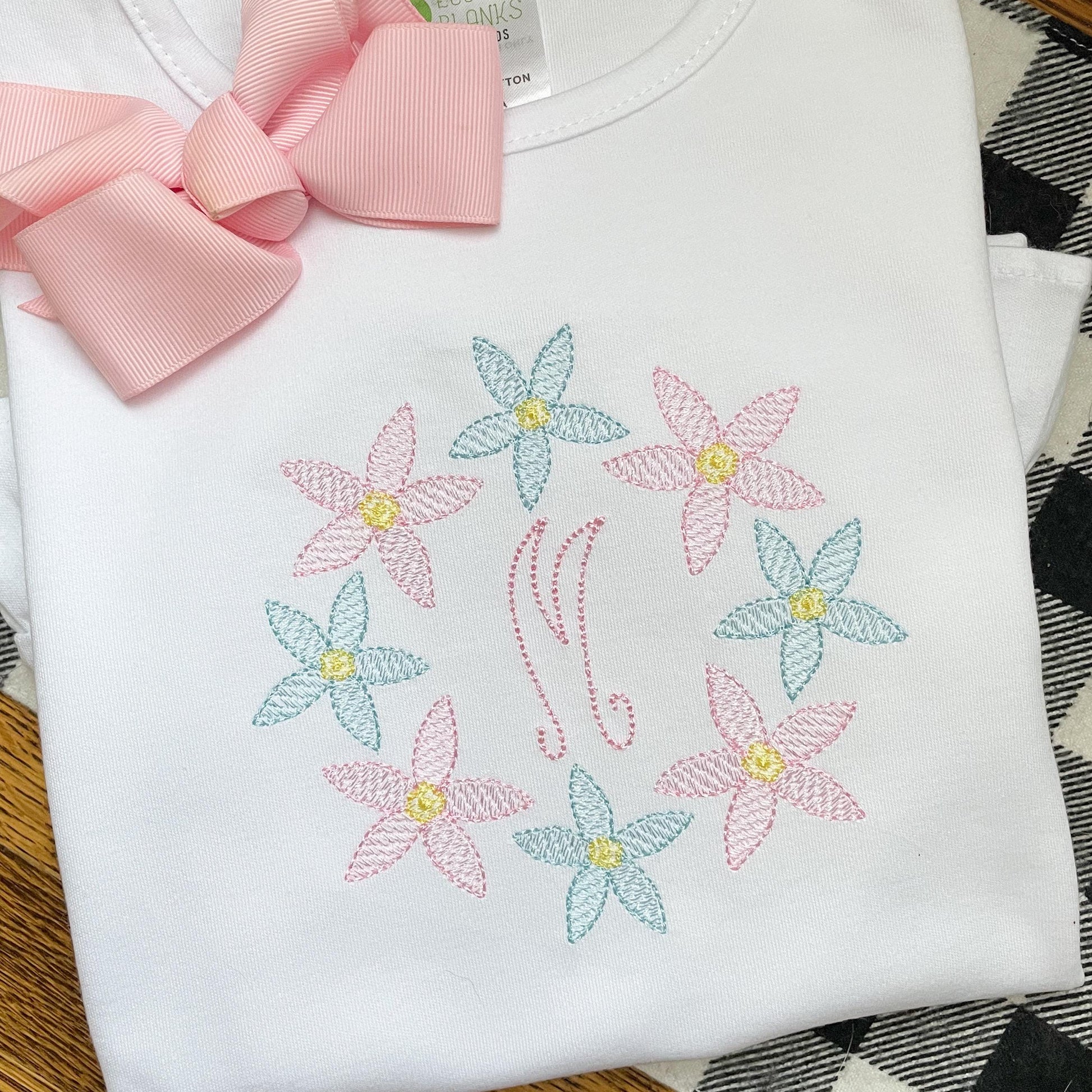 Design includes a sketch floral monogram frame machine embroidery file. Font not included.