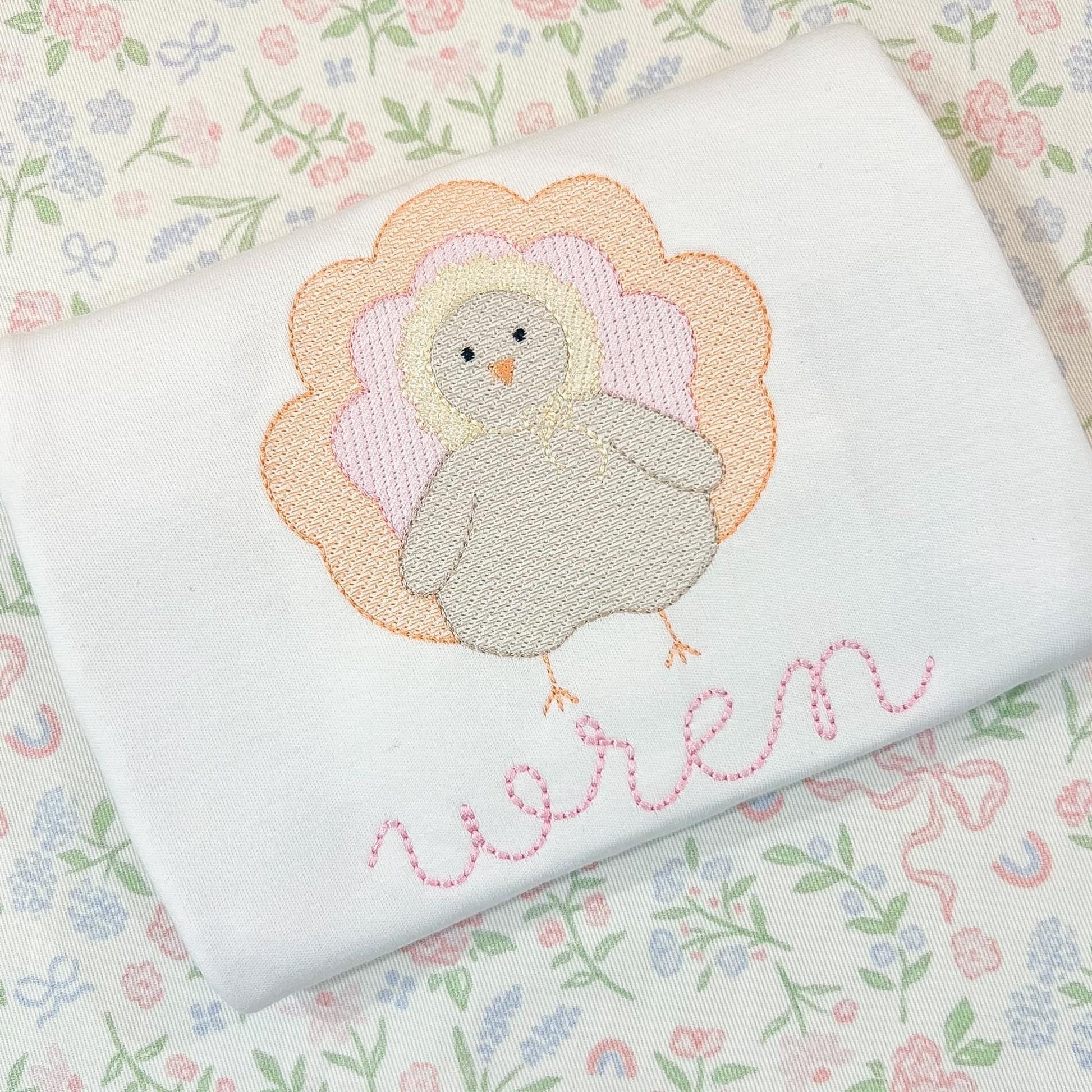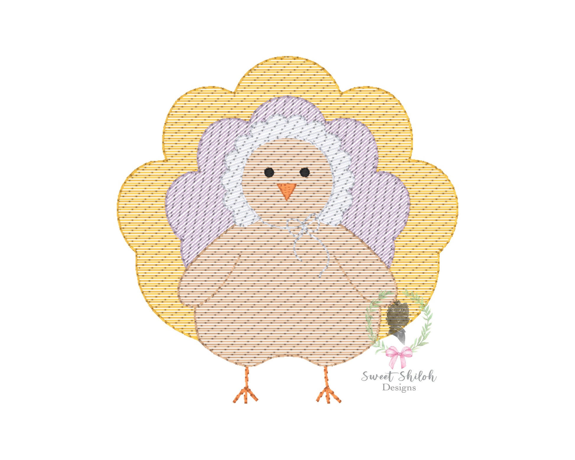 Design includes a sketch stitch pilgrim turkey machine embroidery file. Fonts not included.