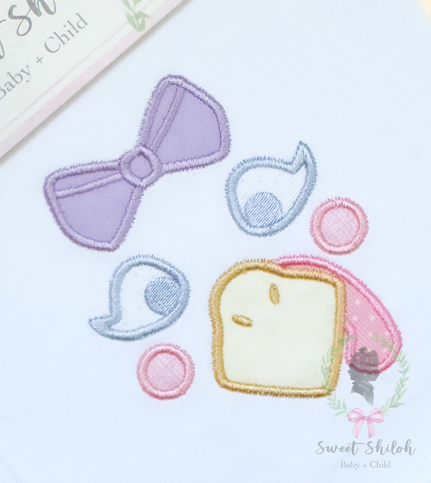Design includes a satin stitch turkey face with bow appliqué machine embroidery file. Fonts not included.