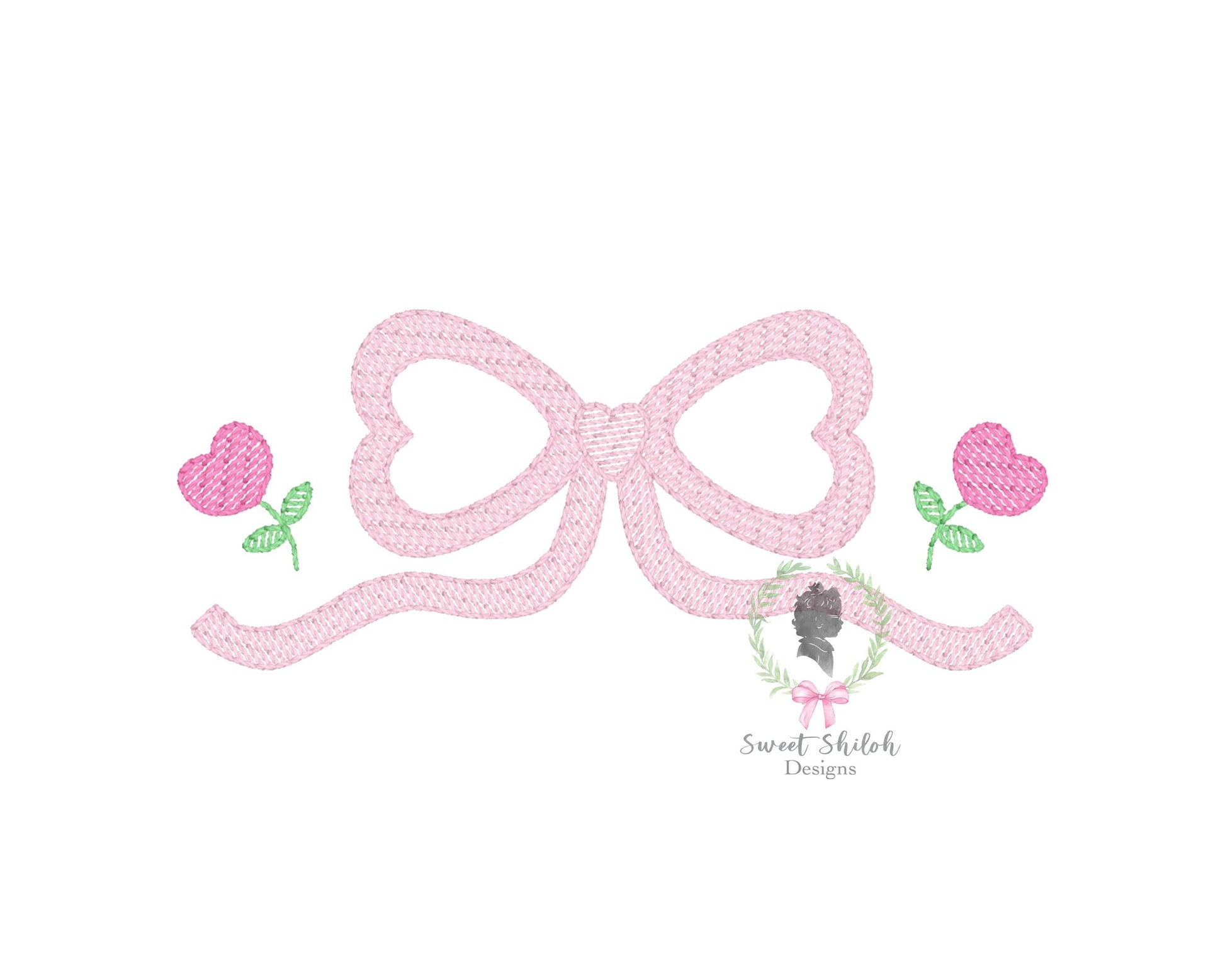 Design includes a Valentine's Day heart bow sketch frame machine embroidery file. Font not included.