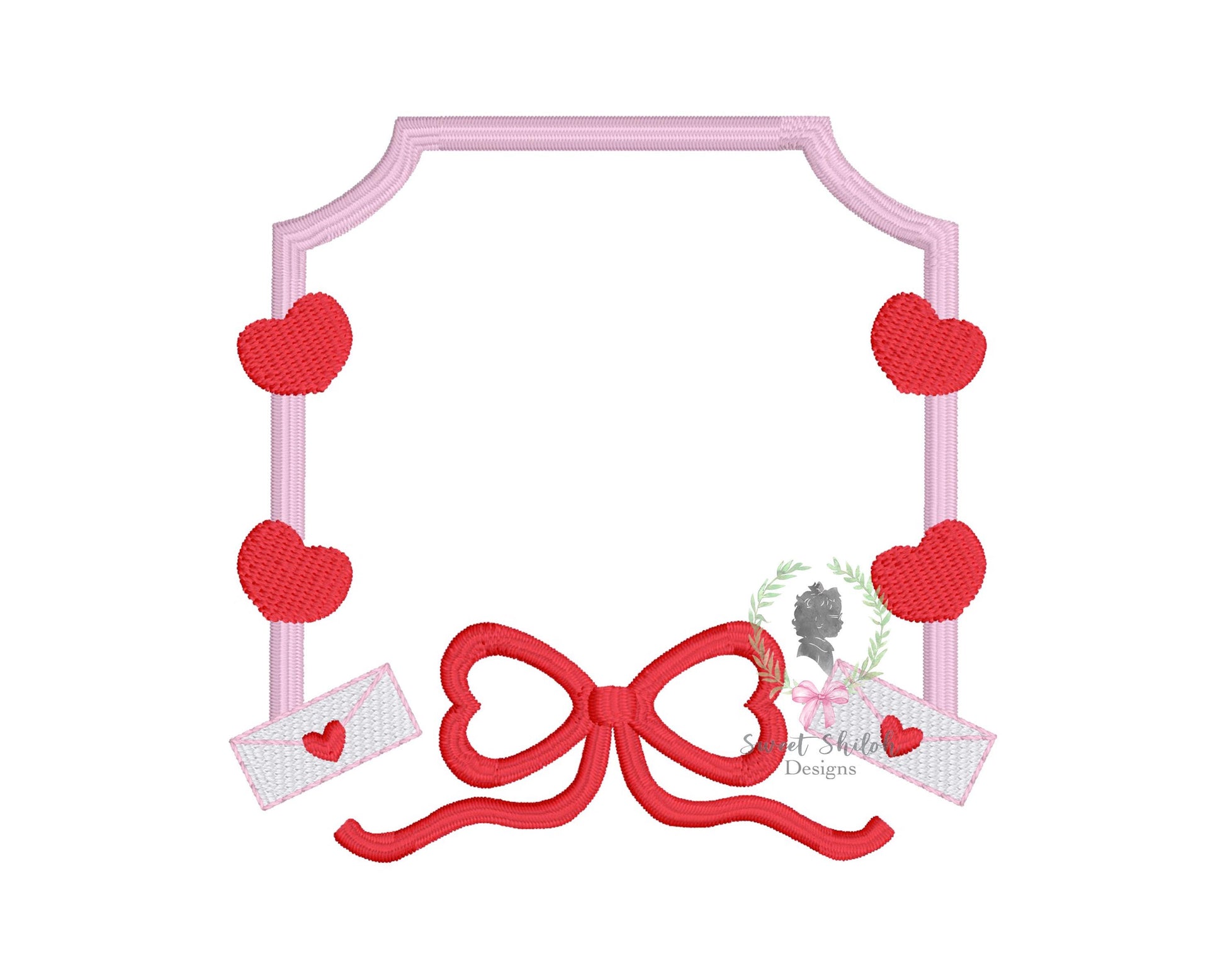 Design includes a Valentine's Day love letter frame machine embroidery file. Font not included.