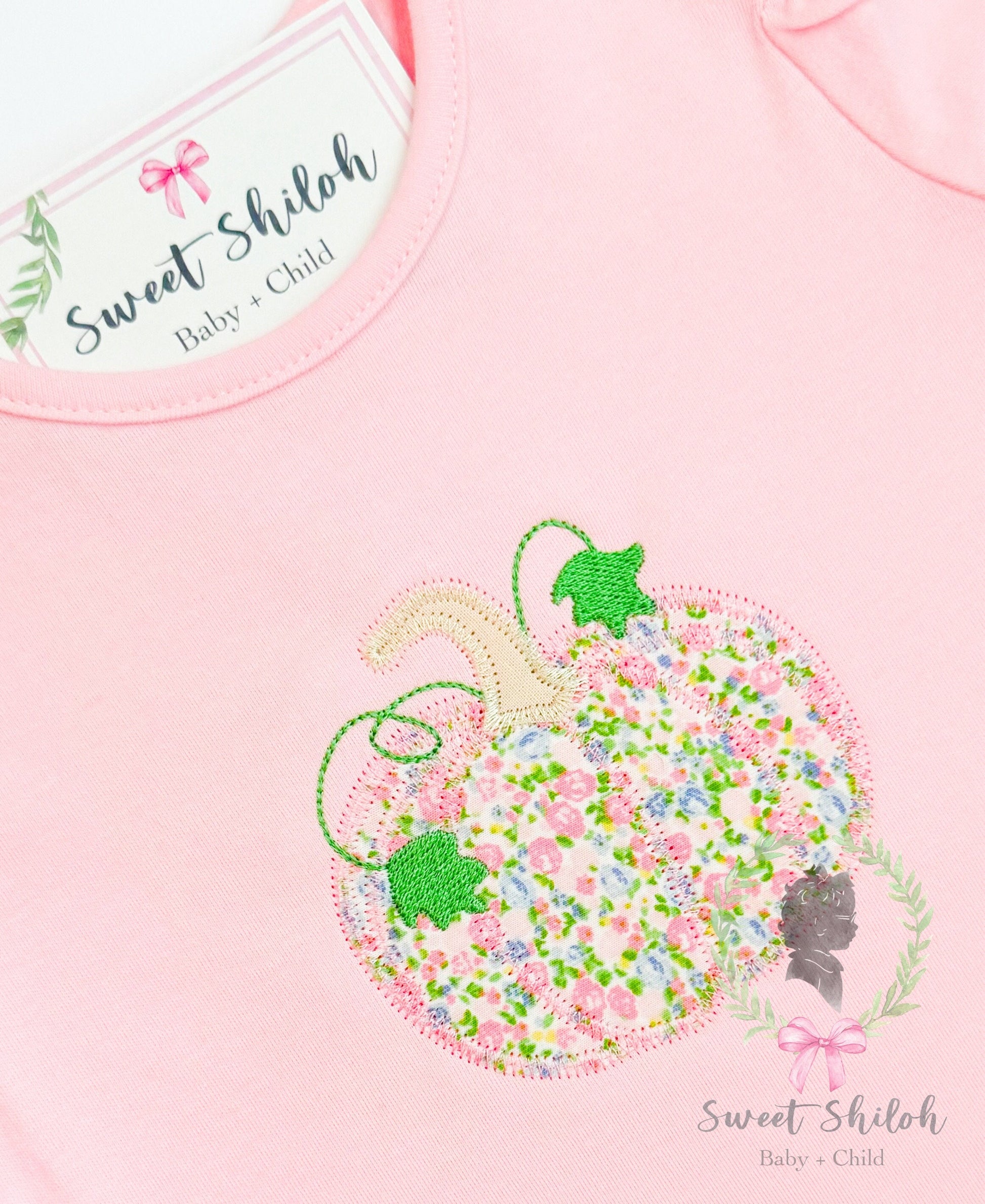 Design includes a zigzag stitch vineyard pumpkin appliqué machine embroidery file. Fonts not included.